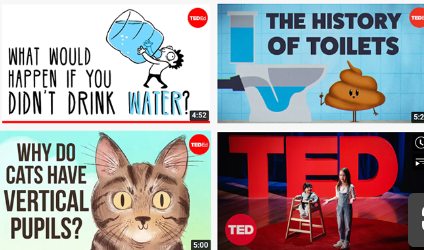 - 심리학, 철학, 디자인, 과학, 음악, 미술, 운동, 종교, 교육 등 다양한 TED